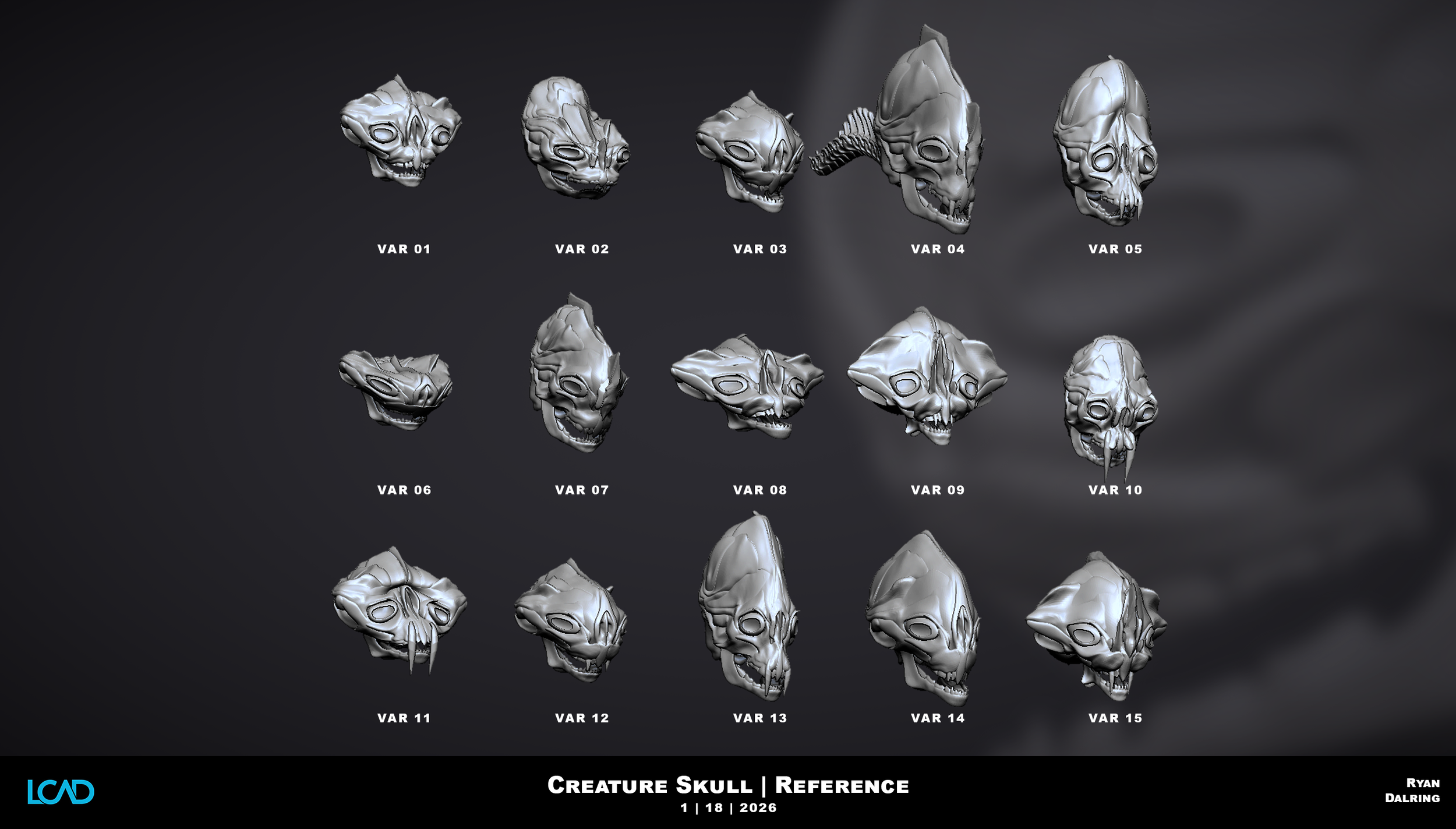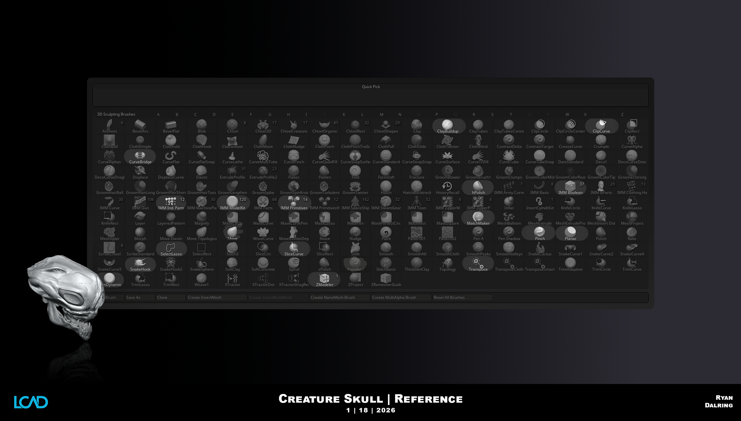 In this project, you will design and sculpt a creature skull using the provided custom brush. The creature may be real, extinct, or entirely conceptual, but it must feel anatomically believable and grounded in biological logic.